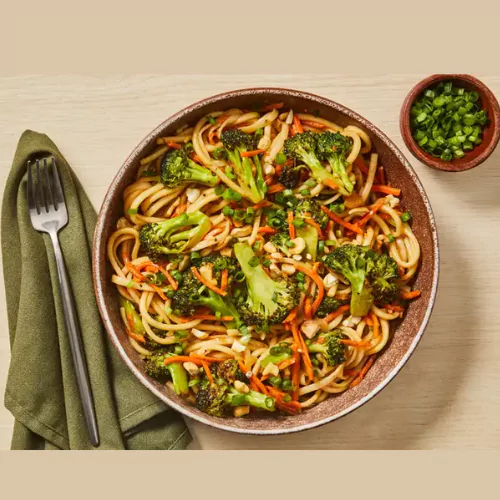 Sweet Heat Broccoli & Carrot Lo Mein with Cashews & Scallions