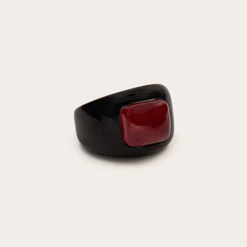 Black Chunky Red Resin Detail Ring