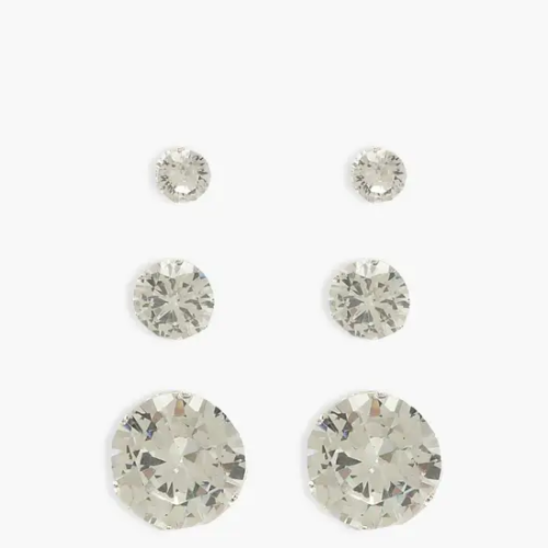 3 Pack Diamante Stud Earrings