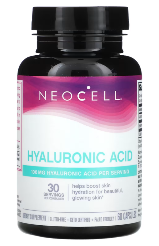 NeoCell Hyaluronic Acid supplies 100 mg per serving to help boost skin hydration and suppleness. Known as one of nature’s most water-loving molecules, it supports tissue hydration and joint health. Regular use enhances natural beauty, making skin soft and glowing while complementing other beauty supplements. Non-GMO, keto-friendly, and gluten-free, it provides internal support for radiant skin and overall wellness