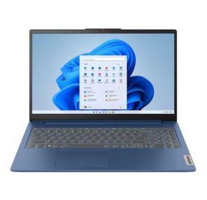 Blue laptop with AMD Ryzen 5, 8GB RAM, and 512GB SSD for smooth performance.