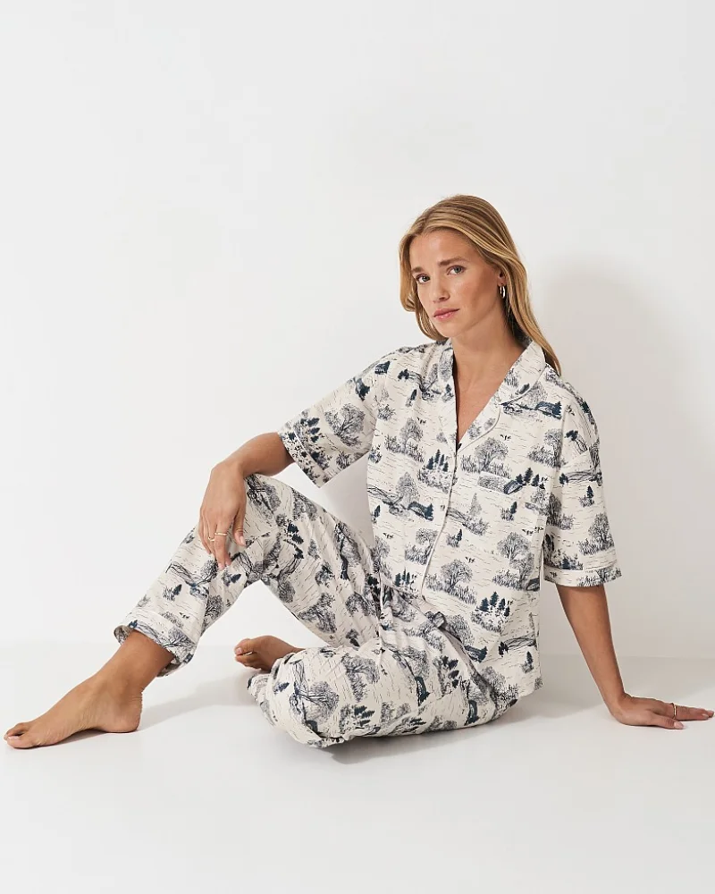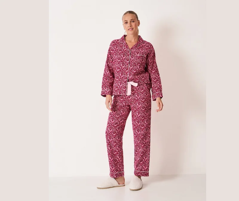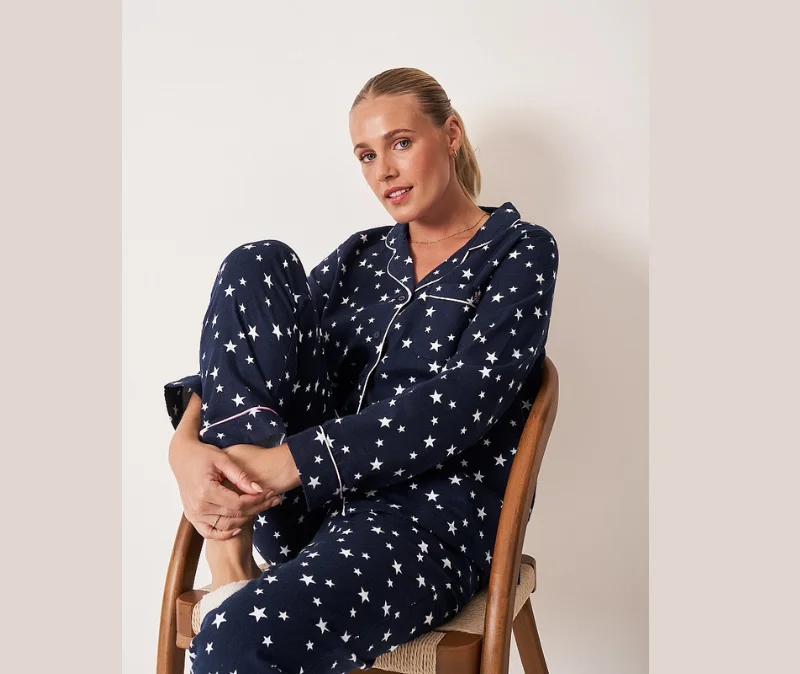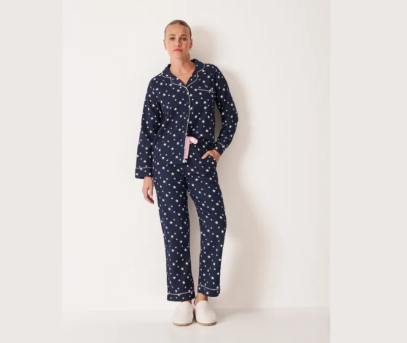 Cotton-Flannel PJ Set in Navy & Pink Star Print