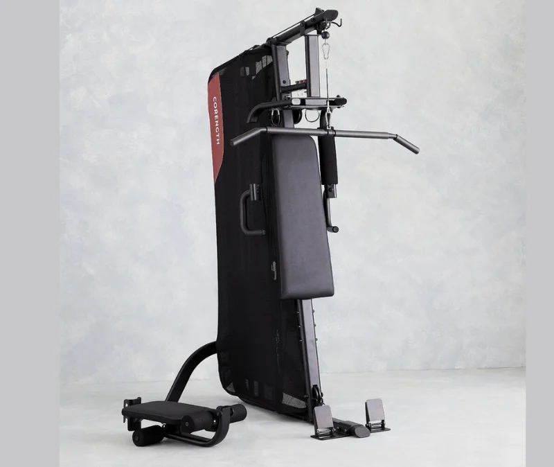 - Sturdy 14-gauge steel frame with 4″ pulleys and sealed ball bearings, supporting users up to 135 kg for a durable, space-saving home gym.