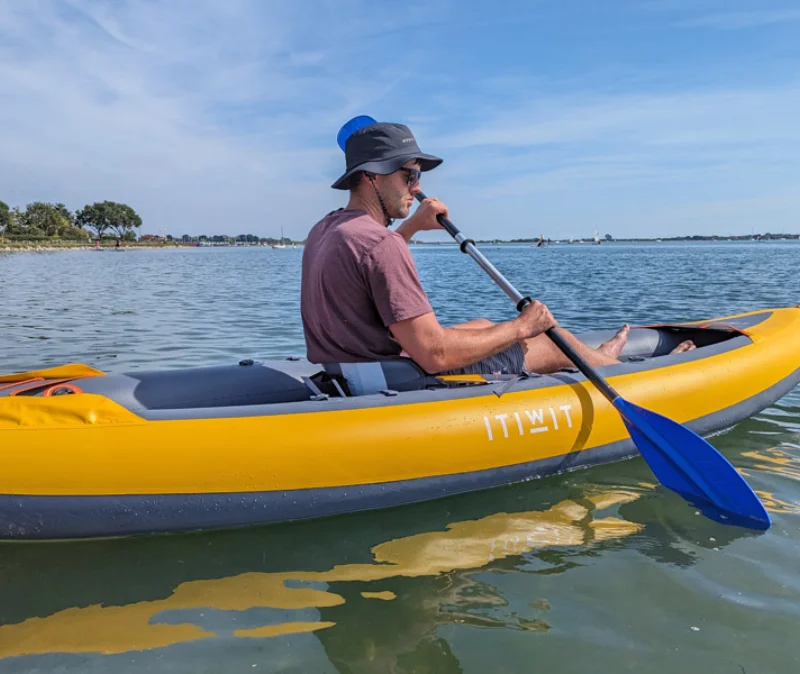 - Adjustable back and chin straps for a secure fit, ideal for kayaking, canoeing, and kayak surfing; CE & UKCA approved (EN1385:2012), sizes XS–L (49–61 cm).
