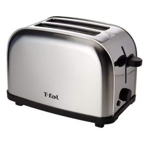 2-slice toaster with 6 browning settings and wide slot for versatile toasting.