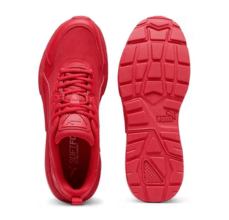 Black sneakers with red, white, and gray accents for a bold basketball look.