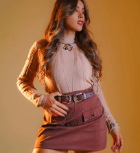 This Jennifer Lopez jacket comes in a rich coffee color with a youthful, trendy style.