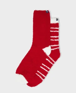 Oversized Chunky Cable-Knit Cricket Jumper in Navy & Red