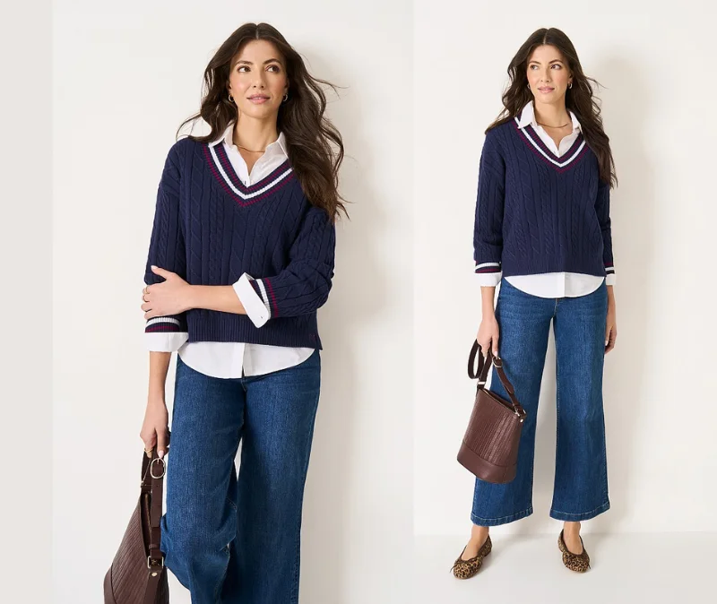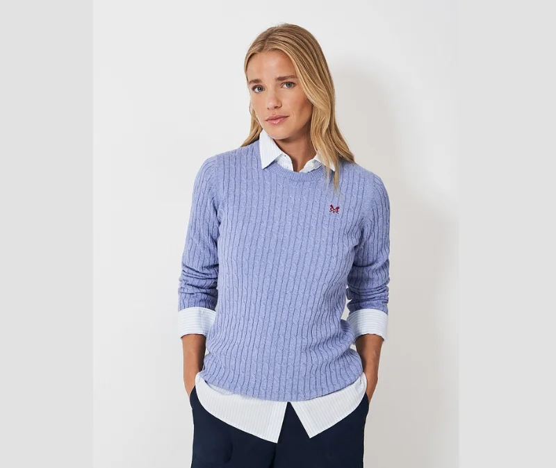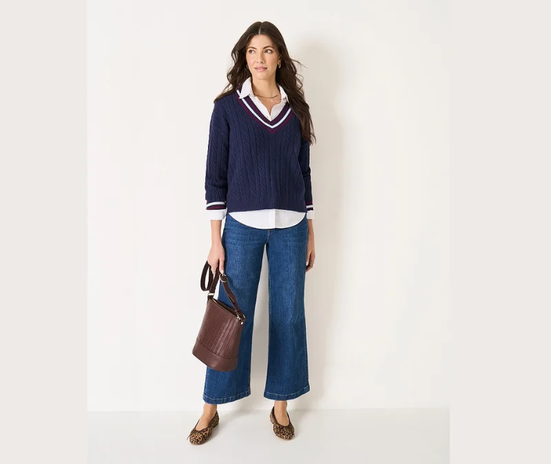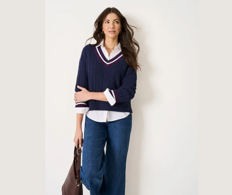 - Chunky cable knit adds rich texture and cosy warmth for cooler days.
